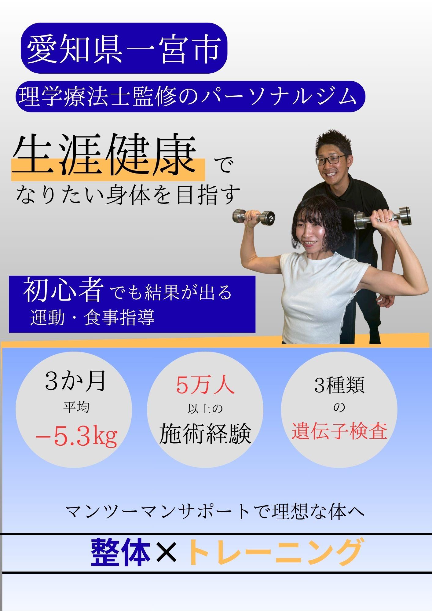 ”を実現しています。 無理のない食事や運動、姿勢の改善を通して、健康的に痩せる体づくりをサポートしています。 特に40代〜60代の女性から多くの支持をいただいており、食事・運動・姿勢のトータルサポートが人気です。 一生モノの身体を一緒に目指してみませんか?まずはお気軽に体験してみてください。