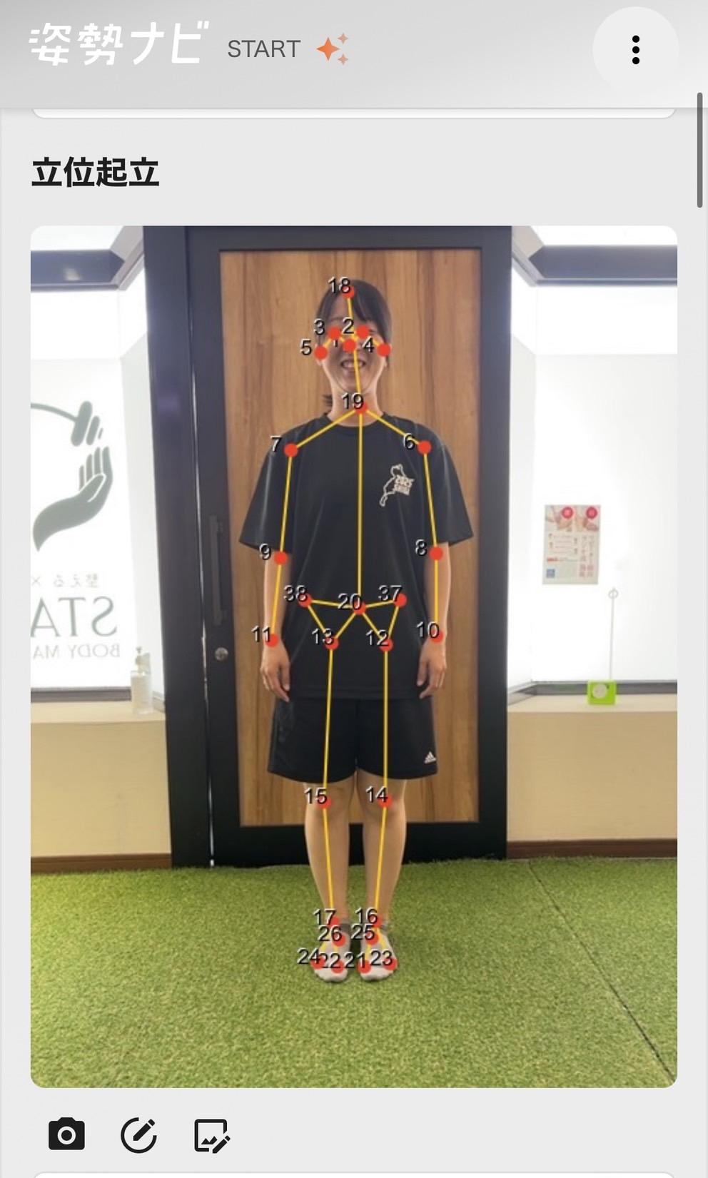 AI姿勢分析を用いて、現在の姿勢状態を明確化していきます。体の歪みなどに対して、アドバイスさせていただき